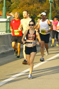 Marathon morning was beautiful. I awoke well-rested and calm. The temperature was in the low 60s, with the sun just rising and a cool breeze from the water. There were no race-related nerves: it was simply time to execute the last 26.2 miles. I stood quietly picturing what was to unfold. I had no doubt about my ability – this is what I trained for. With 17 weeks of training behind me, and my 3:35 pace tattoo, I was ready.