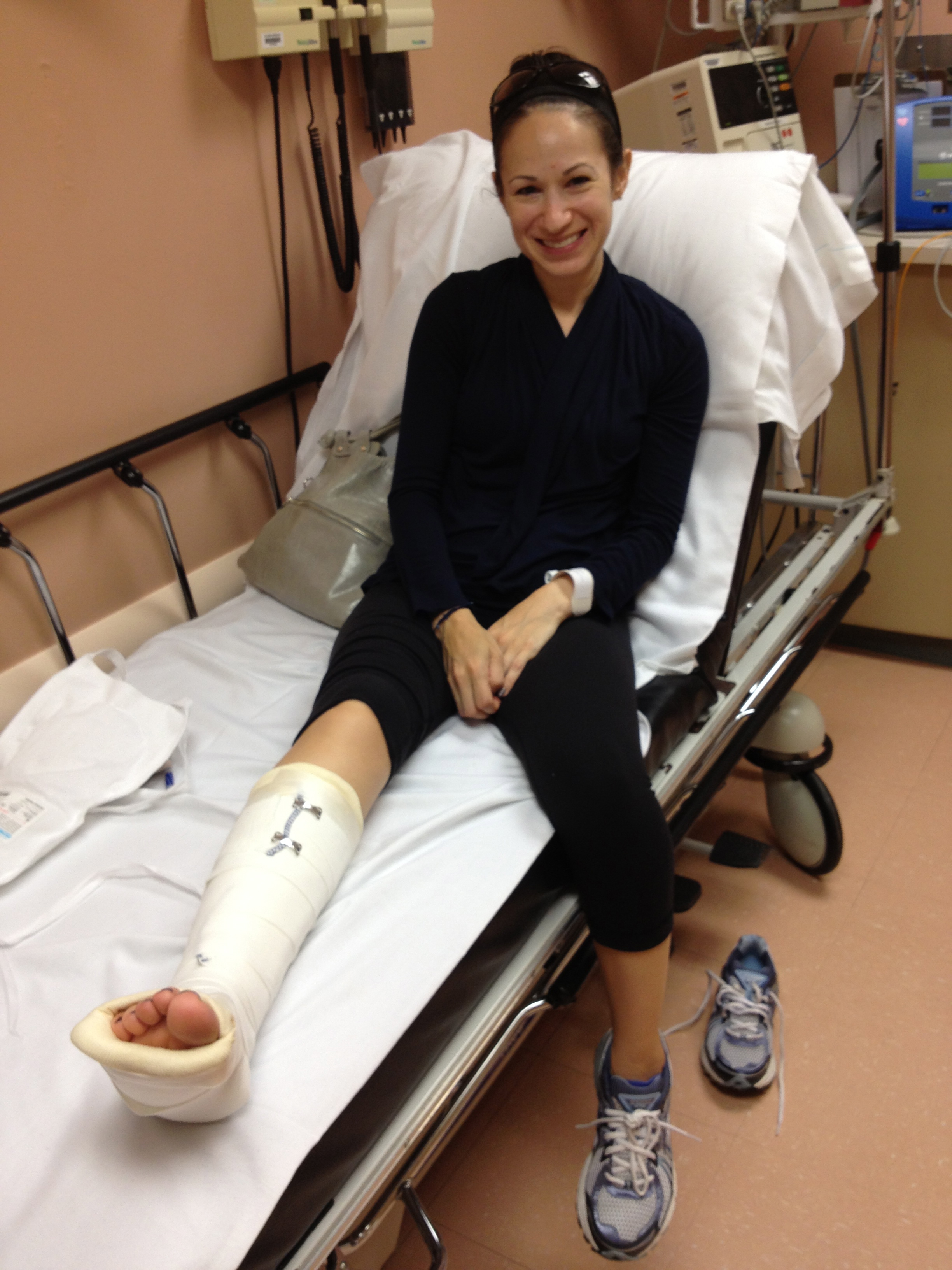 The medics at the finish line were amazing people. They took great care of me and gave me the names of local facilities to be x-rayed. An urgent care facility confirmed a stress fracture on my right 5th metatarsal. I left wearing a splint and on crutches.