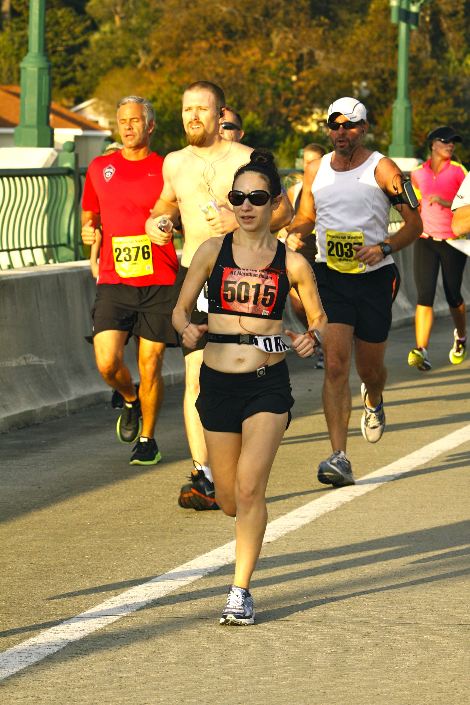 Due to its size, the Pensacola Marathon had no start corrals. I tucked myself in behind the front runners knowing I’d get room to ease into my pace from the beginning. My biggest challenges would be to not get lured in by the half marathoners’ paces, and to not go out too fast.